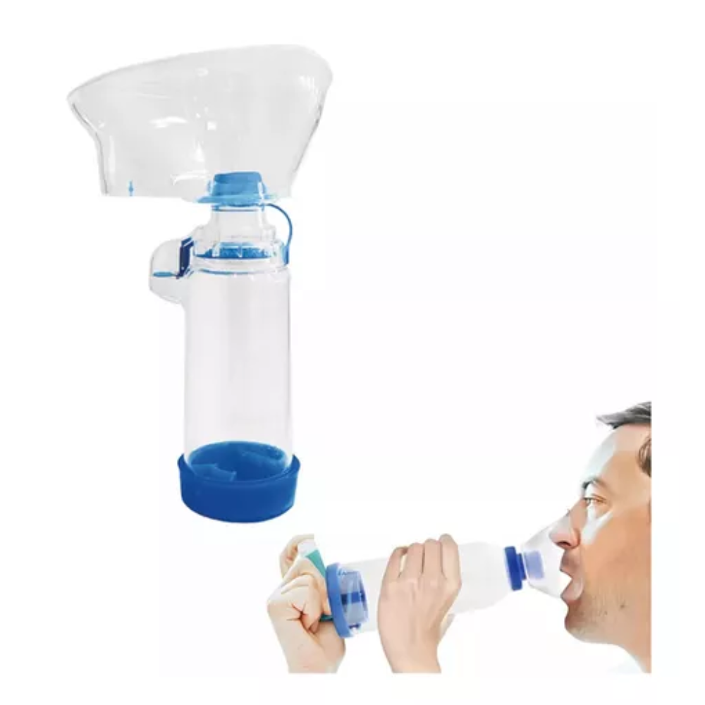 Aero cámara espaciadora con válvula para ADULTO, marca SUPERCONFORT. Dispositivo médico diseñado para mejorar la administración de medicamentos inhalados, ideal para el tratamiento de enfermedades respiratorias como el asma y la EPOC.