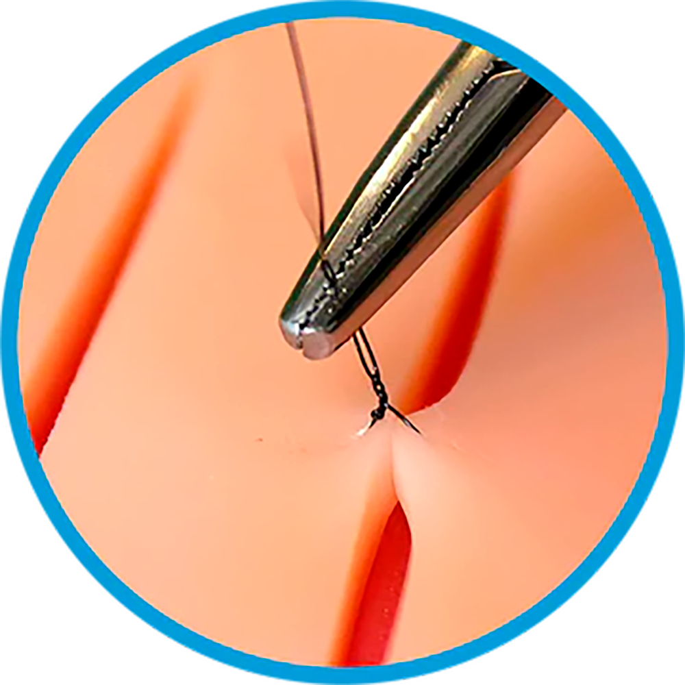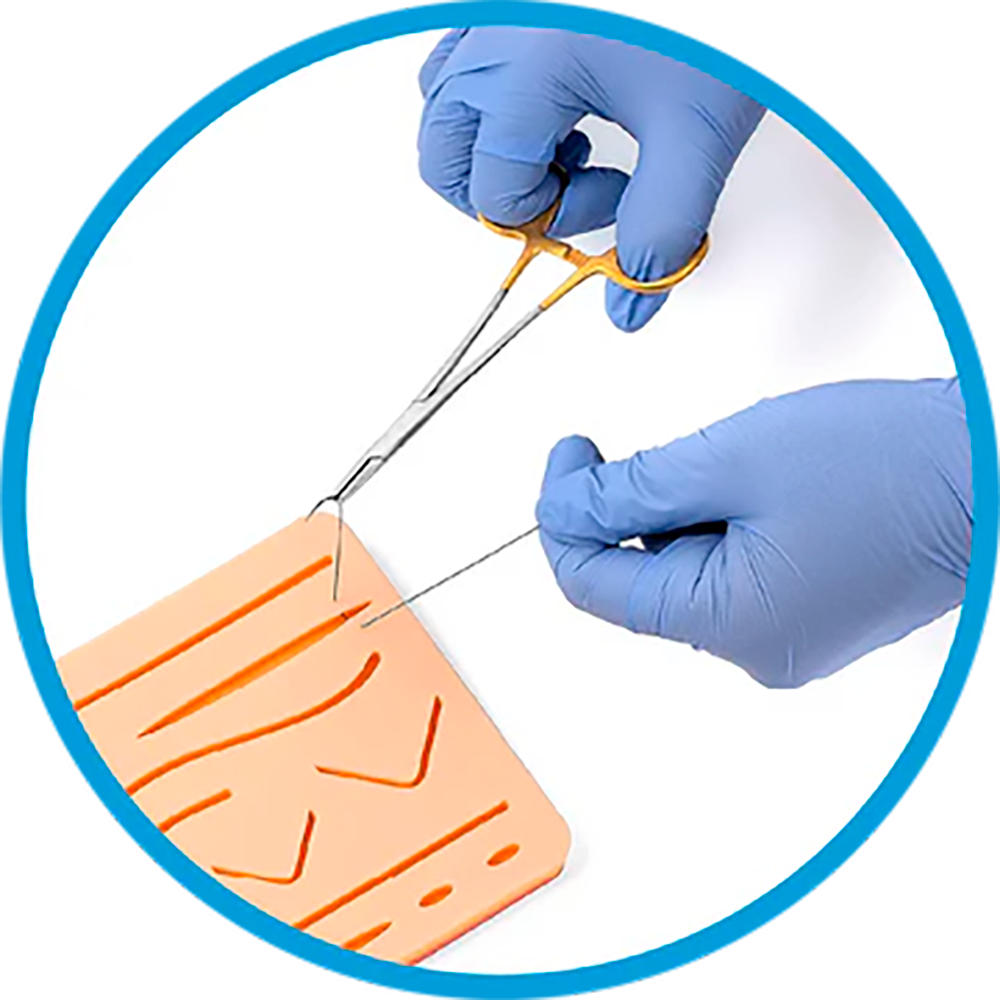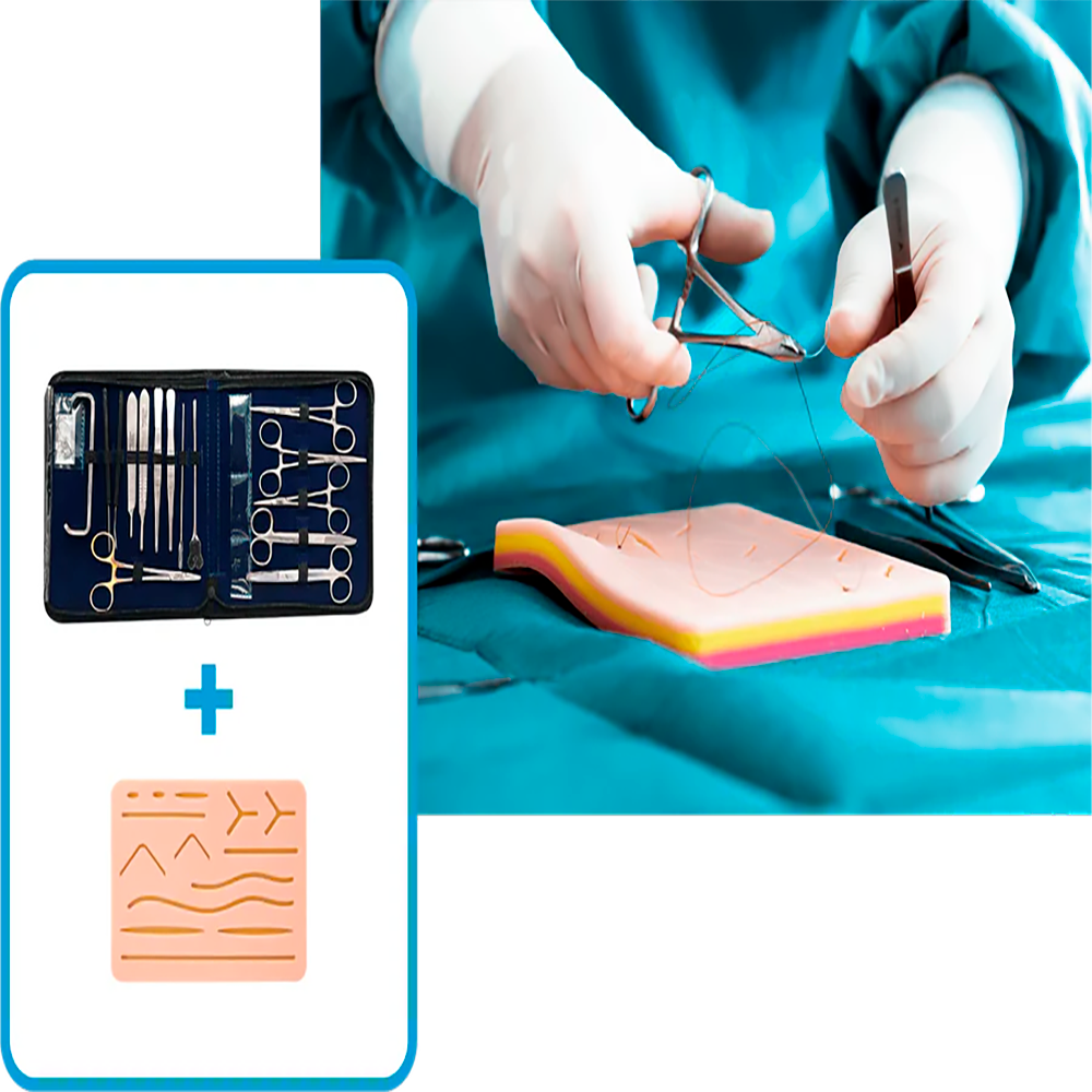 Almohadilla de simulación de piel para prácticas de sutura. Medidas de 17x12x12 cm. Marca HERGOM. Flexible para manipulación cómoda y precisa, simulando la textura y la resistencia de la piel humana.