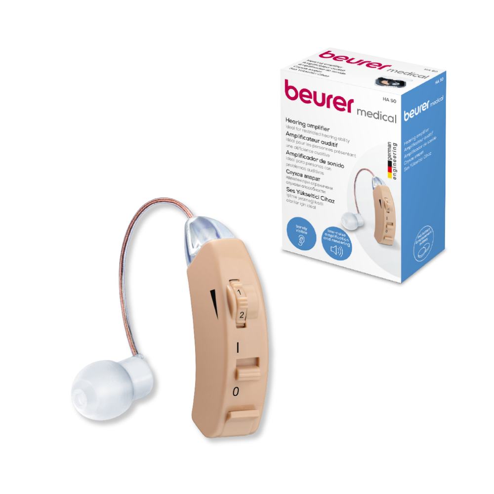 Aparato Auditivo HA50 Beurer/Amplificador Auditivo Beurer, Auxiliar para Oído. Un auxiliar auditivo BTE aloja los componentes auditivos en una carcasa que descansa detrás del oído. Un tubo acústico de plástico transparente dirige el sonido amplificado a un auricular o un molde personalizado que se coloca dentro del canal auditivo.