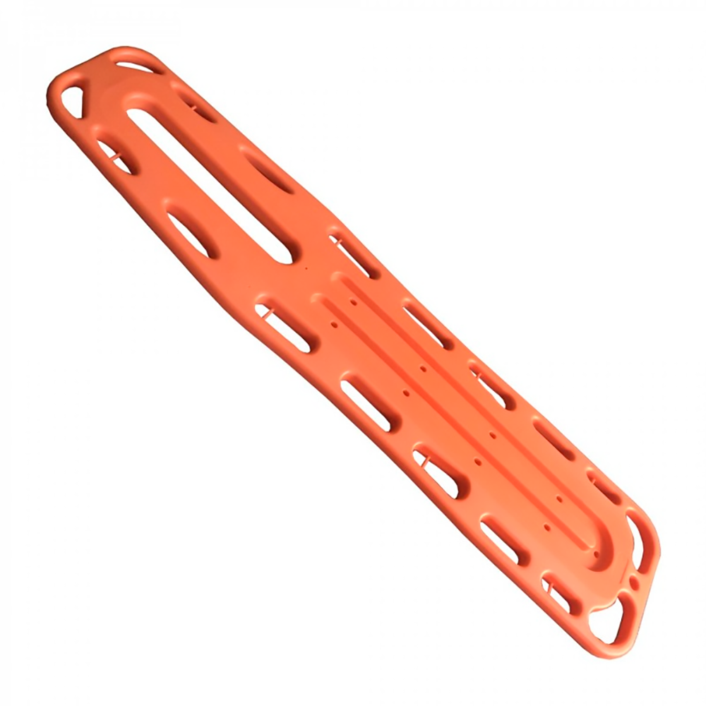 Camilla rígida de alta resistencia, en color naranja (modelo SC-PA1), diseñada para el transporte e inmovilización en situaciones de evacuación, atención de primeros auxilios y rescate. Es resistente al agua y rayos x.