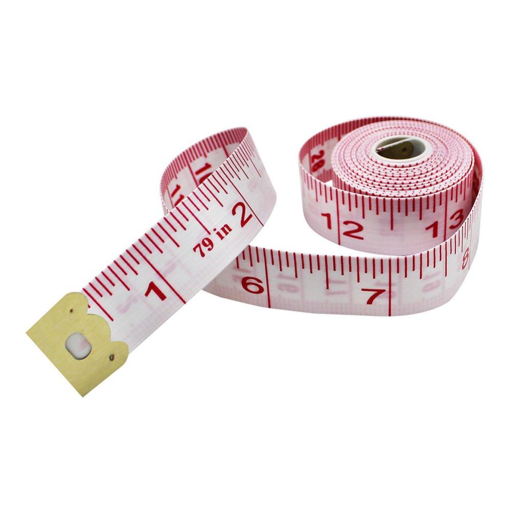 Cinta para Medir Cuerpo de doble cara. Una longitud de un solo lado de 0 a 60 pulgadas, la longitud interior es de 0 a 100 cm, el ancho es de 2 cm / 0.79 pulgadas, y la medición que puede ser medido de acuerdo a sus requerimientos.