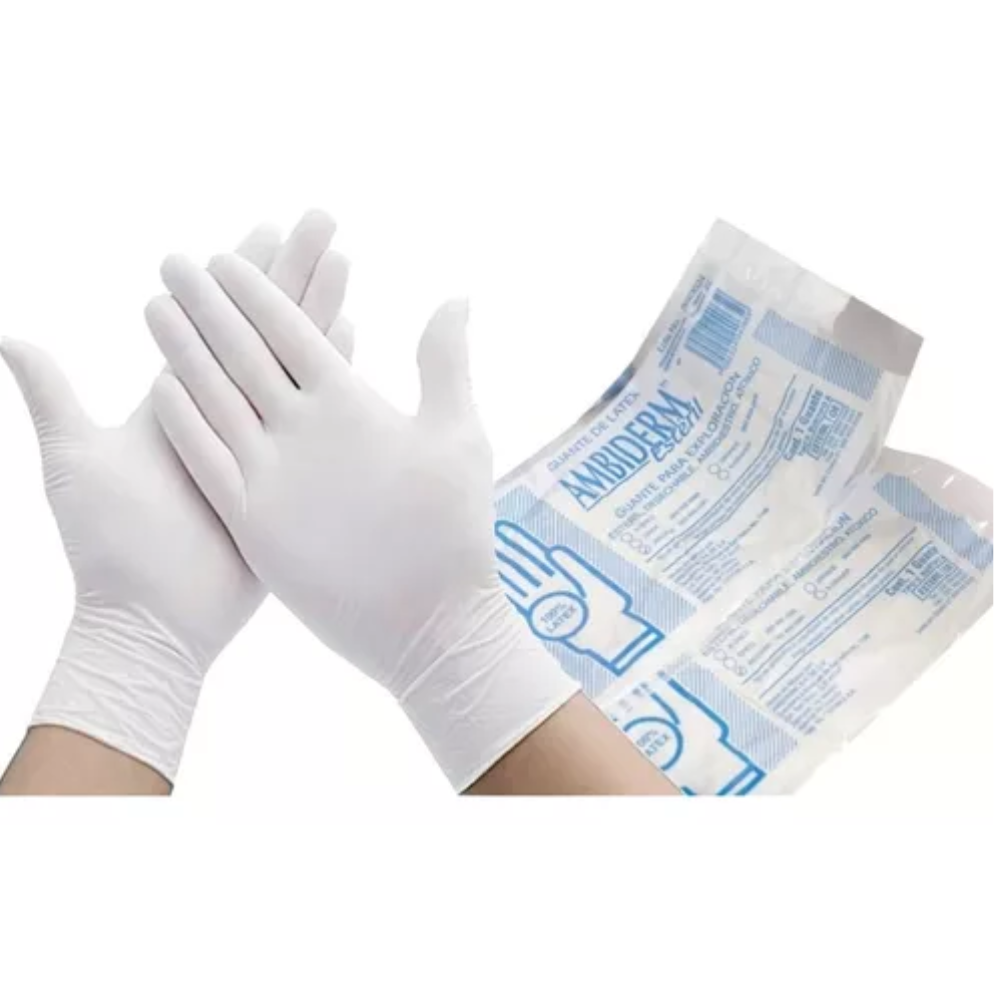 GUANTE ESTERIL. Marca Ambiderm. Ideal para proteger a los profesionales de la salud y a los pacientes de la transmisión de microbios e infecciones.