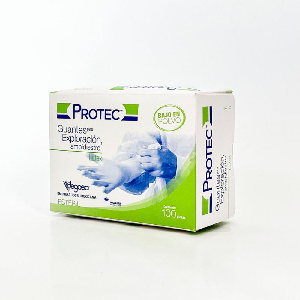 GUANTES EXPLORACIÓN ESTÉRIL. Marca PROTEC. Guantes estériles y desechables de látex natural, diseñados para su uso en quirófanos. Ambidiestros y con empaque individual, garantizando máxima higiene y facilidad de uso. Ofrecen excelente sensibilidad al tacto y son esterilizados con óxido de etileno.