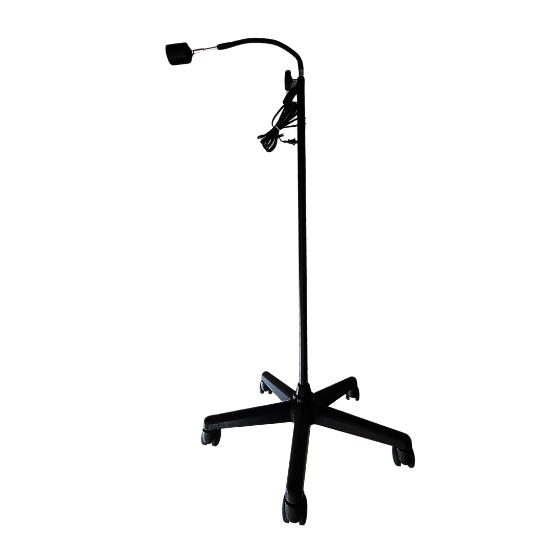 Lámpara de examinación con tecnología LED de alta intensidad, diseñada para proporcionar iluminación clara y uniforme en procedimientos clínicos y diagnósticos.