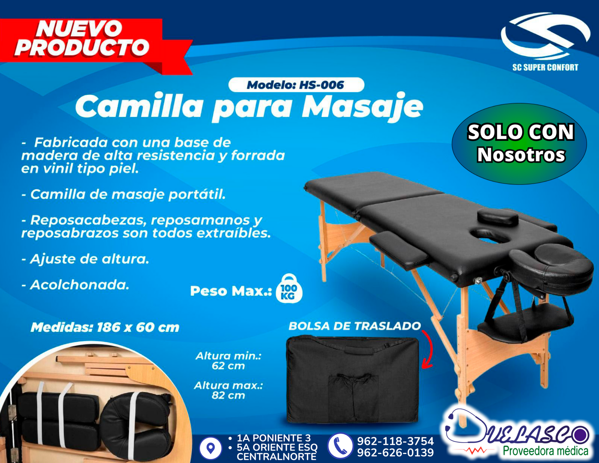 DISEÑO AJUSTABLE El diseño de la camilla para masajes permite modificar su altura, por lo que es segura y perfecta para ser usada a nivel profesional como terapeutas físicos, masajistas o tatuadores.