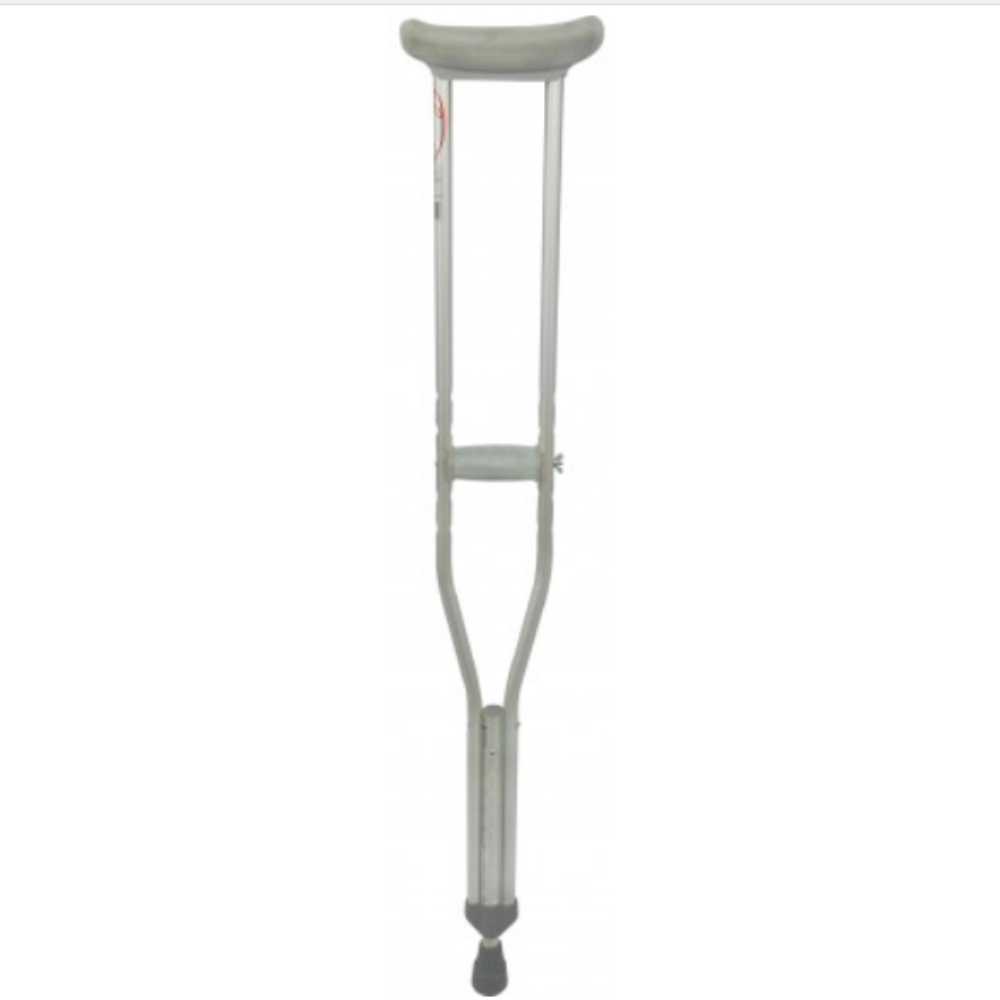 MULETA DE ALUMINIO AJUSTABLE. Marca: Speedy. Fabricada en aluminio de alta calidad, esta muleta es ajustable en altura de manera sencilla, con un rango amplio de graduación. Su empuñadura plástica y el soporte axilar recubierto de espuma proporcionan comodidad y adaptabilidad. La empuñadura es graduable sin necesidad de herramientas. Características: