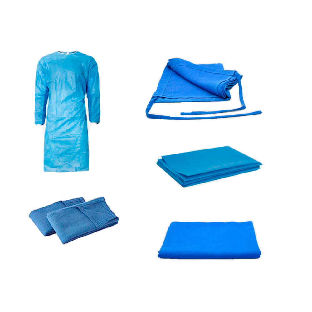 PAQUETE DE ROPA QUIRÚRGICA PARA PARTO. Características de la tela: No tejida SMS, no transparente, antiestática y resistente a la tensión en uso normal; repelente a líquidos y fluidos; hipoalergénico, desechable y estéril. Contiene: