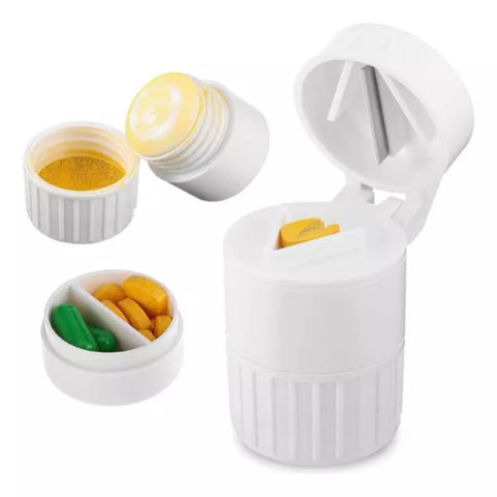 TRITURADOR Y CORTADOR DE PASTILLAS. Marca: Super Confort (modelo SC-P002). Este dispositivo multifuncional está diseñado para cortar, triturar y almacenar pastillas, facilitando la administración diaria de medicamentos. Ideal para quienes necesitan dividir o triturar pastillas para una ingesta más fácil y cómoda. Características: