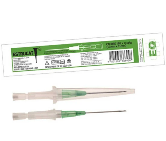 PUNZOCAT CALIBRE 18. Marca Estrucat. Catéter intravenoso periférico utilizado para la transfusión de soluciones medicinales y sanguíneas. Características: